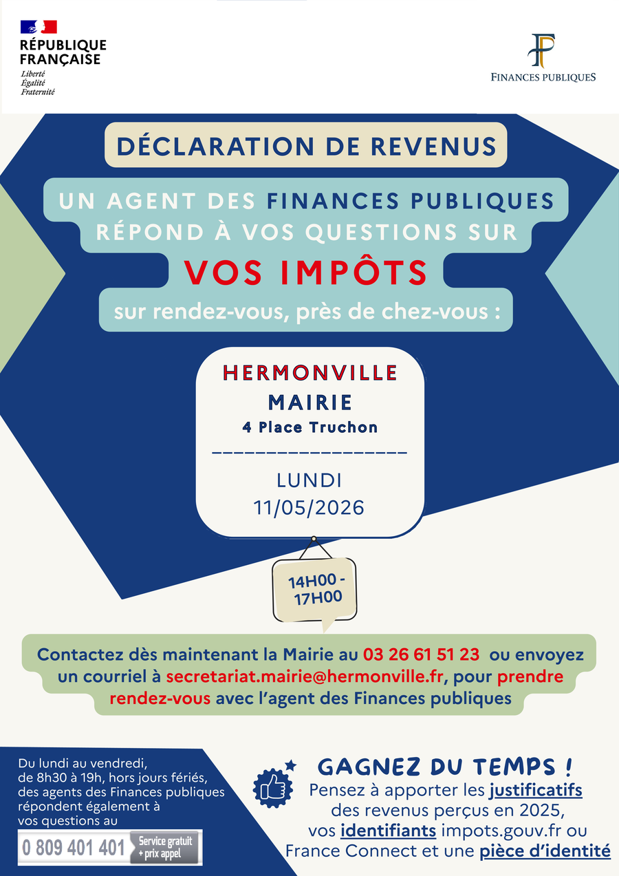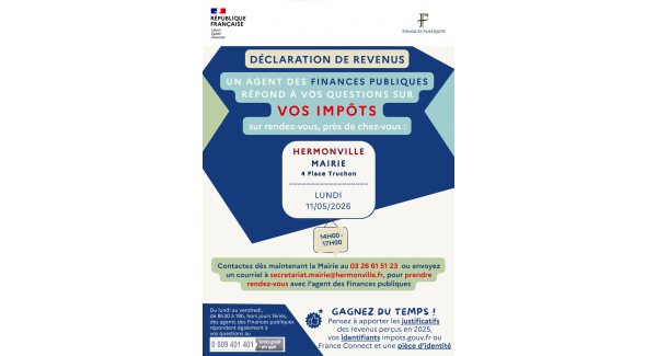 Permanence à la mairie d'Hermonville le 11 mai 2026 de 14 h à 17h